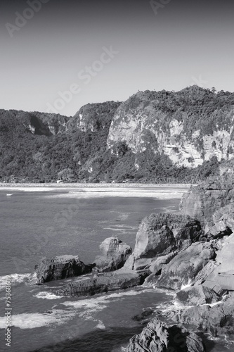 © Tupungato, Obraz premium Pancake Rocks, New Zealand. Black and white.