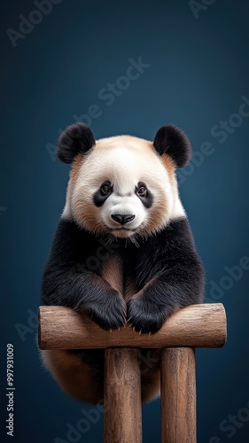 © Food and drink, Fototapeta premium Panda against an isolated background, showcasing its unique appearance and detailed fur in a simple, uncluttered environment.