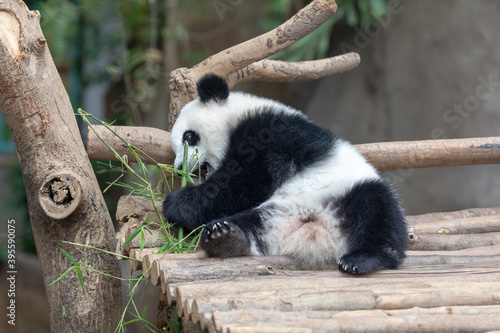 © Semachkovsky , Obraz premium Panda baby Bear eating bamboo. Kuala Lumpur. Malaysia.