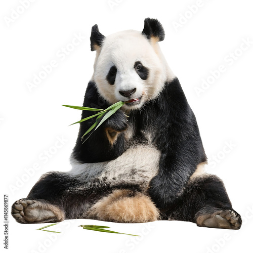 © yanto, Fototapeta premium panda bear chewing on bamboo, isolated on transparent background