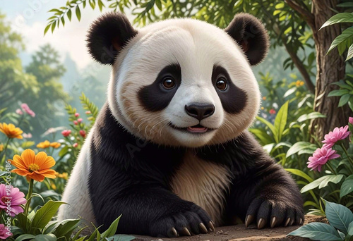 © sasha15, Obraz premium Panda bear close up on nature background