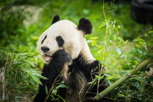 Fototapeta premium Panda Bear eating bamboo shoot