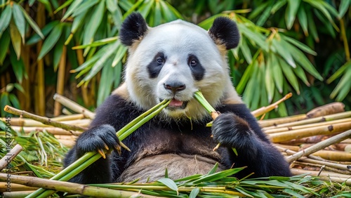 Obraz premium Panda bear eating bamboo shoots