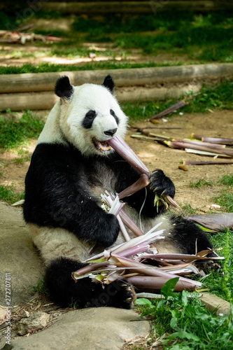 © miami2you, Obraz premium Panda bear eating bamboo. Wildlife.