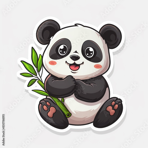 Obraz premium Panda Bear Holding Bamboo Sticker