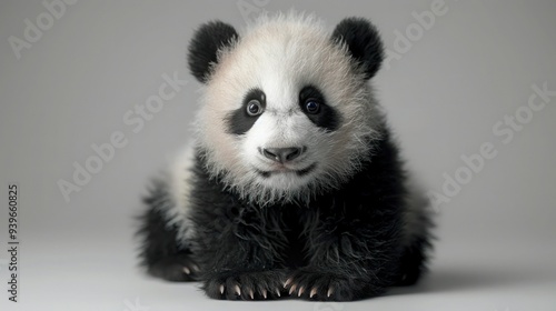 Fototapeta premium Panda Bear on White Background - Majestic Mammal at Rest