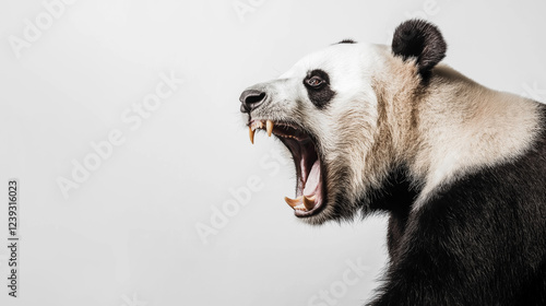 Naklejka premium Panda bear roar on white background with space for text. Copy text space.