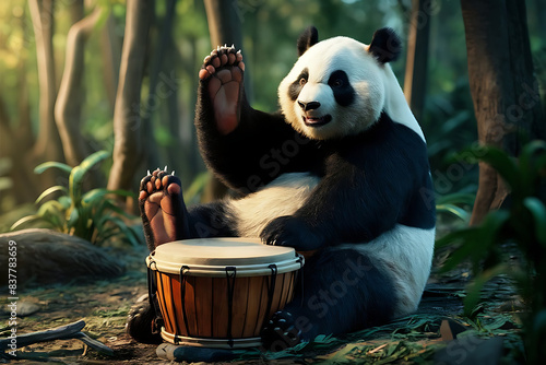 © Muhammad, Obraz premium panda beating drum