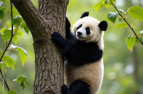 © Mostfa, Fototapeta premium panda climbing a tree