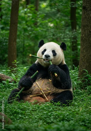 © MrMachyH, Fototapeta premium Panda Eating Bamboo
