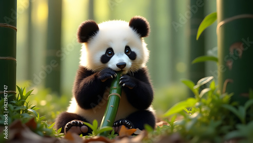 Obraz premium panda eating bamboo
