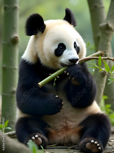 © Humaira, Obraz premium panda eating bamboo