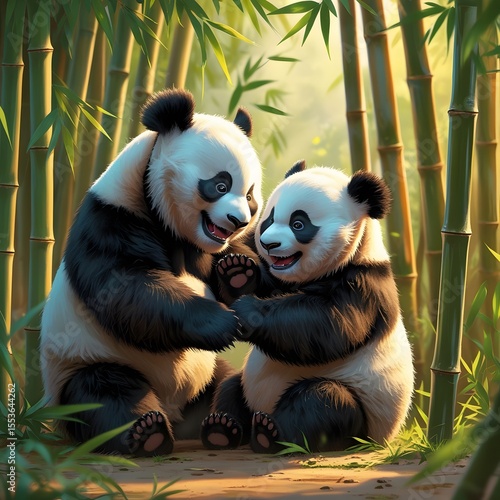 Obraz premium panda eating bamboo