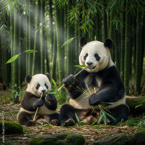 © RIZKI, Obraz premium Panda Eating Bamboo