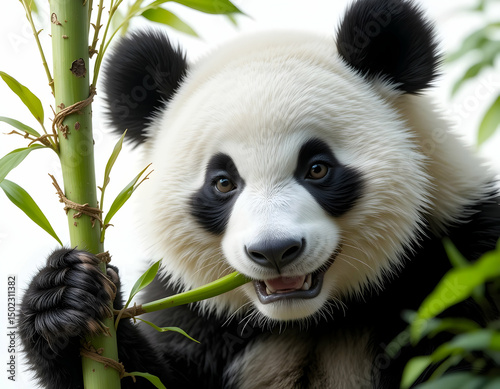 Fototapeta premium Panda Eating Bamboo Shoot Close-up Animal Portrait