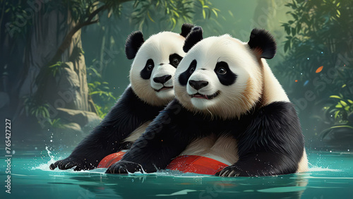 © Rahmat , Obraz premium panda face or cute panda or ilustration of panda