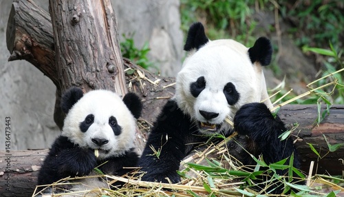 © nana, Obraz premium Panda family