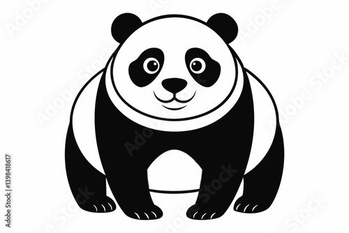 © MSTSALMA, Naklejka premium Panda full body line art vector icon illustration black design white background