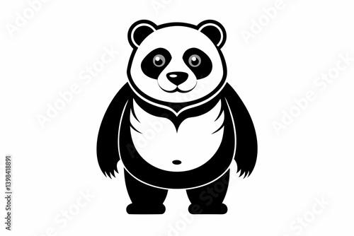 © MSTSALMA, Naklejka premium Panda full body line art vector icon illustration black design white background