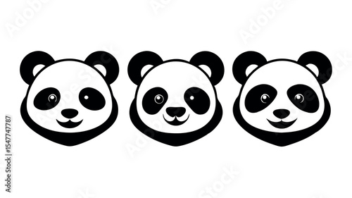 © vectartnest, Obraz premium Panda head in multiple styles — Silhouette on white background