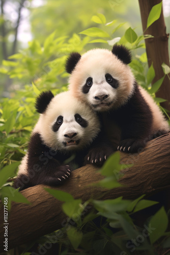 © Felix, Fototapeta premium Panda in the forest Generative AI