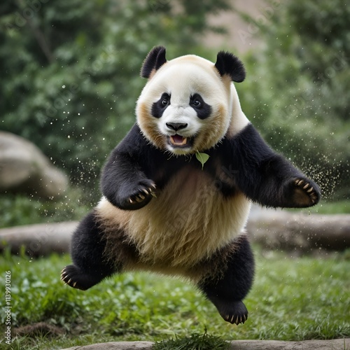 © matrifai, Obraz premium panda jumping fly
