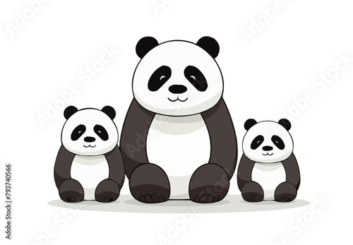 © Sanych, Naklejka premium Panda | Minimalist and Simple set of 3 Line White background - Vector illustration