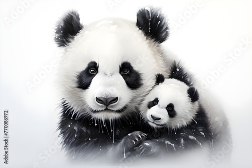 © Sun, Naklejka premium Panda Mother and Cub Close-up with White Background