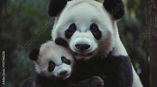 Naklejka premium Panda Mother and Cub in Forest (1)