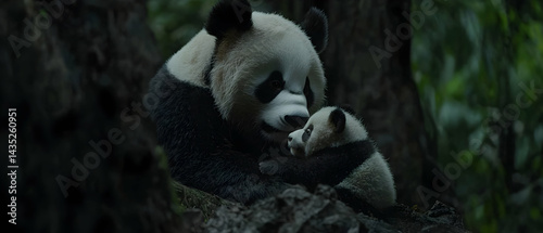 © jam, Fototapeta premium Panda Mother and Cub in Forest