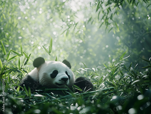 © Marco Attano, Fototapeta premium panda nibbling on bamboo in a lush, protected bamboo forest