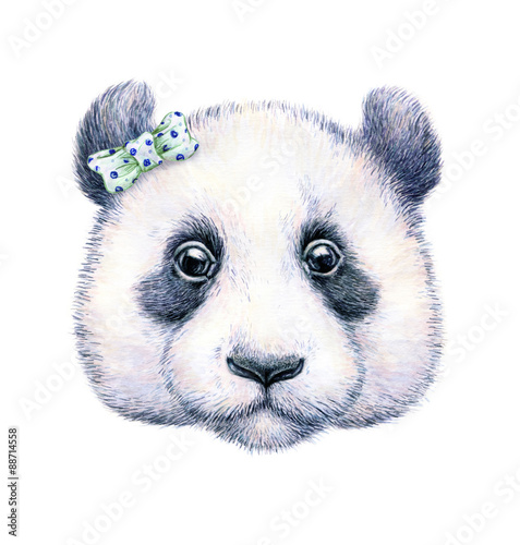 © MargaritaSh, Fototapeta premium Panda on white background. Watercolor drawing. Children's illustration. Handwork