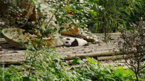 © peacefoo, Obraz premium Panda resting at the Research Base of Giant Panda Breeding
