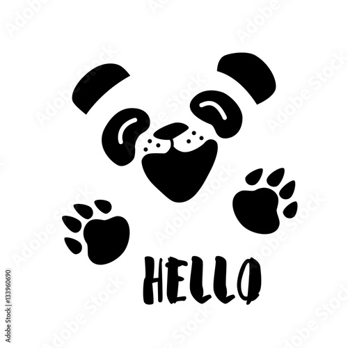 © yanabear, Fototapeta premium Panda says Hello. Vector background with cartoon bear.