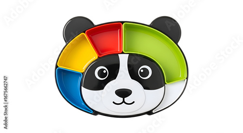 Fototapeta premium Panda Shaped Plate with Colorful Sections Sits Centered on Transparent Background