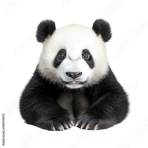 Naklejka premium Panda sitting calmly against a transparent background, showcasing its...