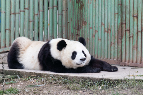 Naklejka premium Panda sleeping on the Green Yard, China