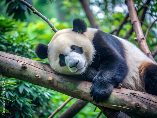© Junayad, Obraz premium panda sleeping on tree branch