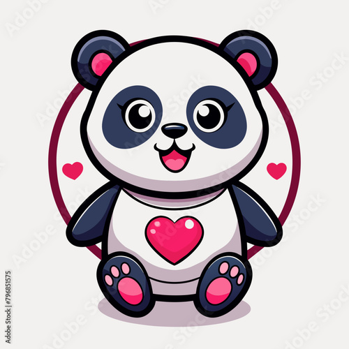 © SK kobita, Naklejka premium panda with heart vector art illustration on white background