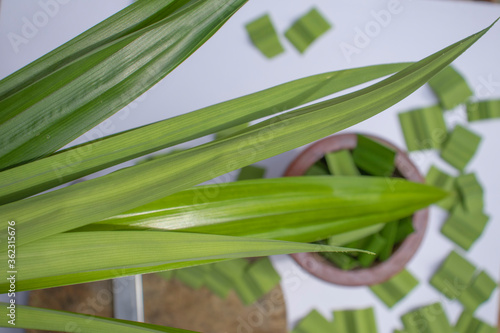 © Chosita, Obraz premium pandan leaves on white background