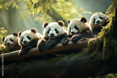 © Diatomic, Fototapeta premium Pandas on a log
