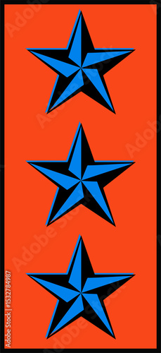 © vectorfusionart, Naklejka premium Panel is showing three flat design blue and black stars on orange fill, transparent background
