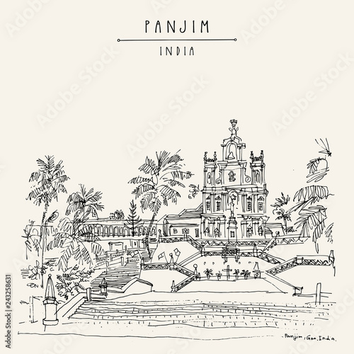 © babayuka, Fototapeta premium Panjim, Goa, India. Our Lady of The Immaculate Conception church. Portuguese architecture postcard