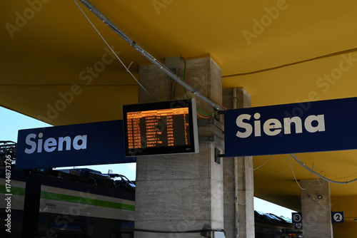 Obraz premium Panneau d'information de la gare ferroviaire de Sienne en gros plan