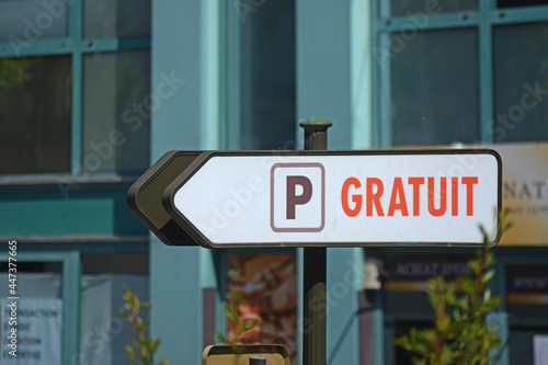 Obraz premium Panneau flèche parking gratuit.
