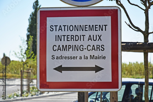 © Georges Blond, Obraz premium Panneau interdit aux camping-cars, s'adresser à la mairie.