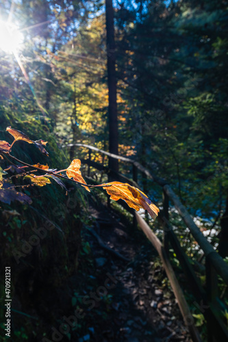 © Nicola Simeoni, Naklejka premium Panorama and details of the Slizza ravine in Autumn. Tarvisio.