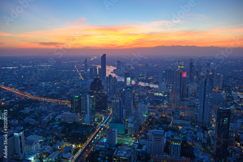 © JJfoto, Fototapeta premium Panorama au crépuscule sur Bangkok