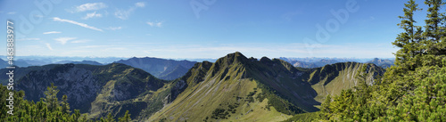 © Stephan, Fototapeta premium Panorama auf einer Wanderung auf den Hochmiesing: Blick zur Rotwand