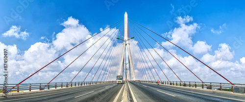 © huythoai, Obraz premium Panorama Can Tho bridge over the rope splash in beautiful sky. Here is the pride of Vietnam architecture make people's lives more developed thanks to this bridge